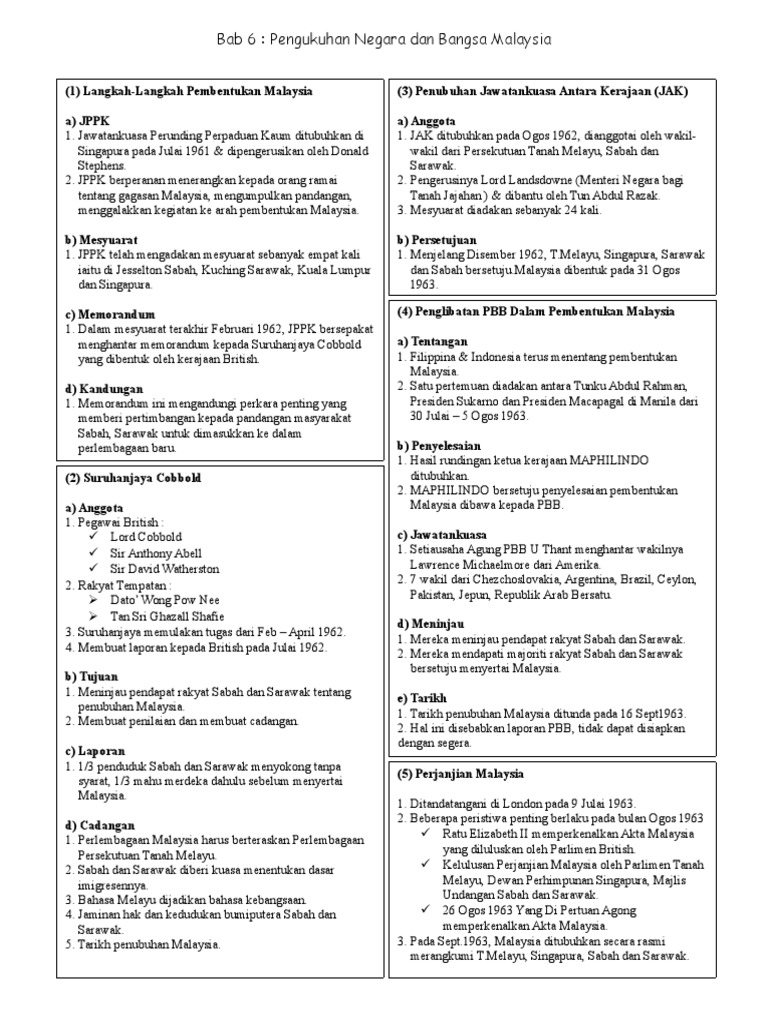 Kertas 3 Sejarah Tingkatan 5 Bab 6 Pembentukan Malaysia